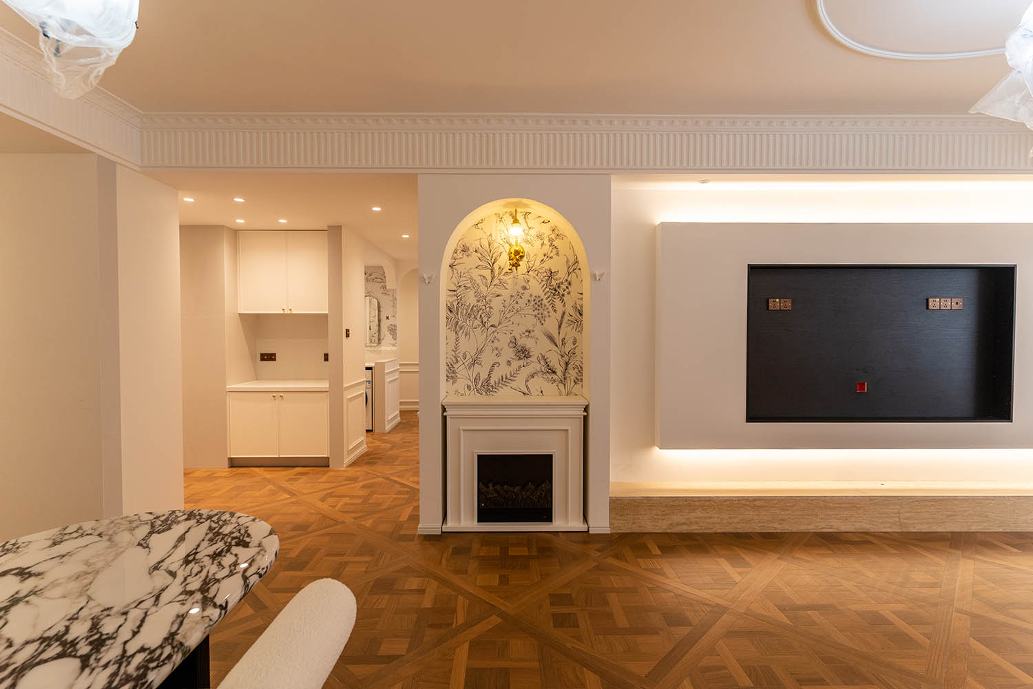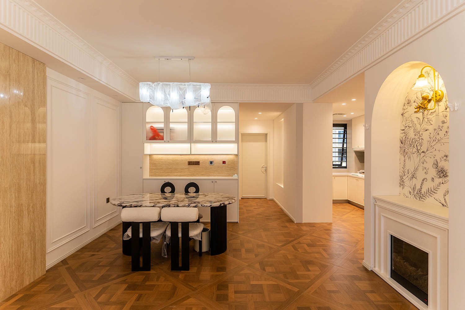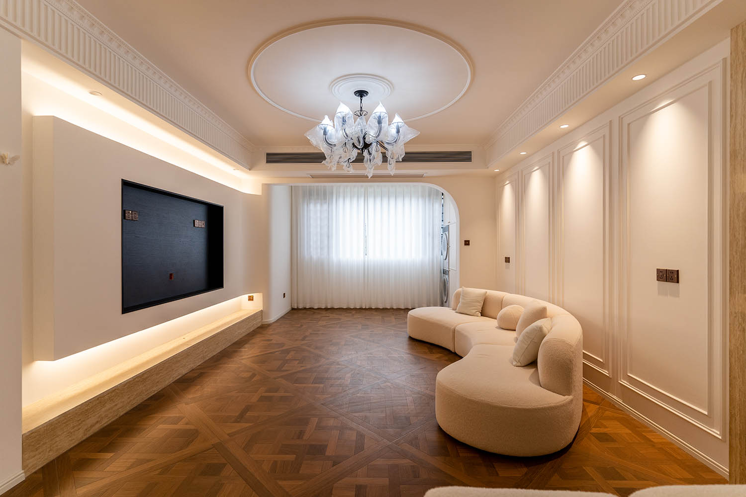 法式風(fēng)格以其優(yōu)雅的線條、精致的細(xì)節(jié)和浪漫的氛圍,成為高端家居設(shè)計(jì)的經(jīng)典選擇。它巧妙地將古典美學(xué)與現(xiàn)代生活需求相結(jié)合,創(chuàng)造出既有藝術(shù)感又實(shí)用舒適的居住環(huán)境。 對于133平米的戶型,法式風(fēng)格能充分發(fā)揮空間優(yōu)勢,通過對稱布局、精致雕花和優(yōu)雅配色,打造出充滿貴族氣質(zhì)與藝術(shù)氛圍的理想居所。 設(shè)計(jì)理念與空間基調(diào) 玫瑰御園133平米法式風(fēng)格的核心在于營造 “優(yōu)雅、浪漫、精致” 的生活氛圍。整體空間以淺色調(diào)為基底,采用米白、香草色、淺灰等優(yōu)雅色調(diào)作為主調(diào),為空間奠定明亮高雅的基調(diào)。