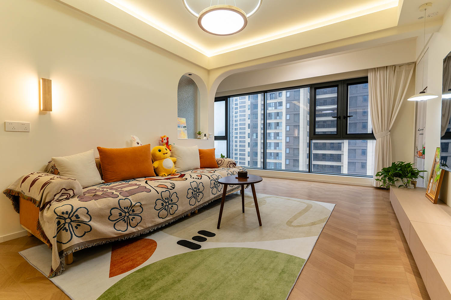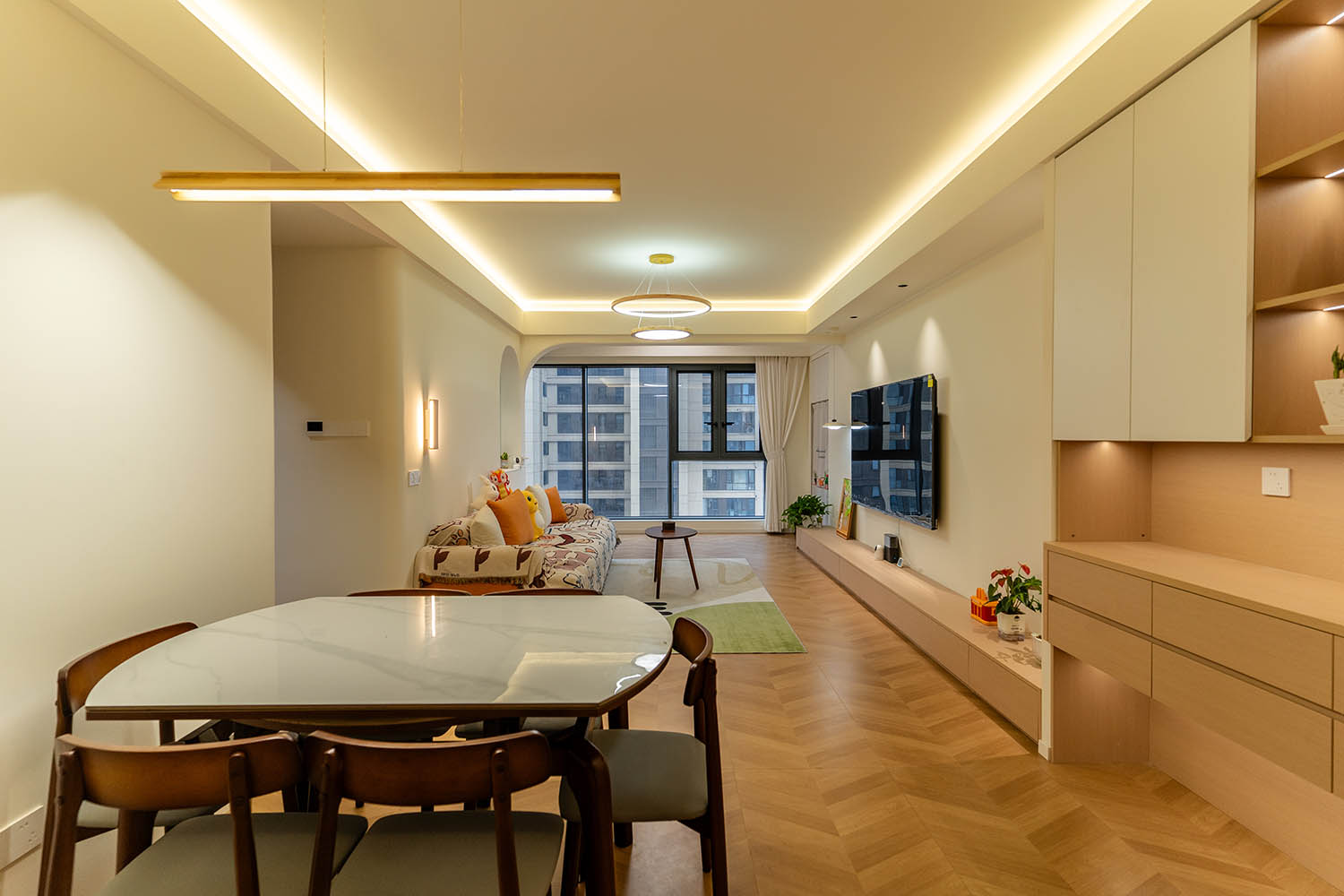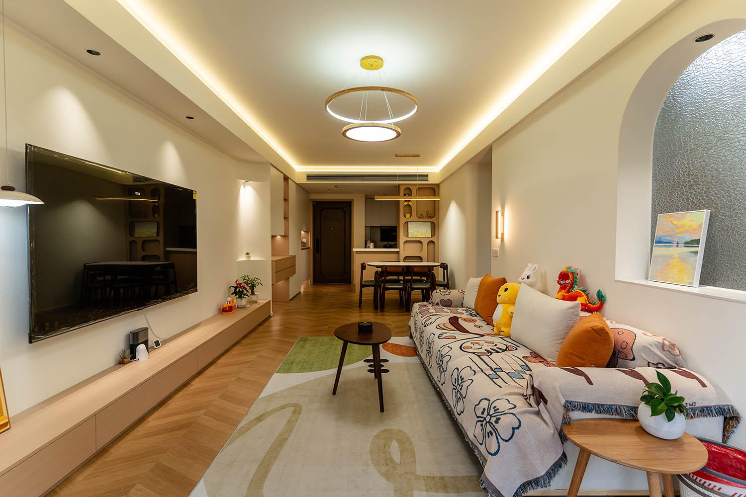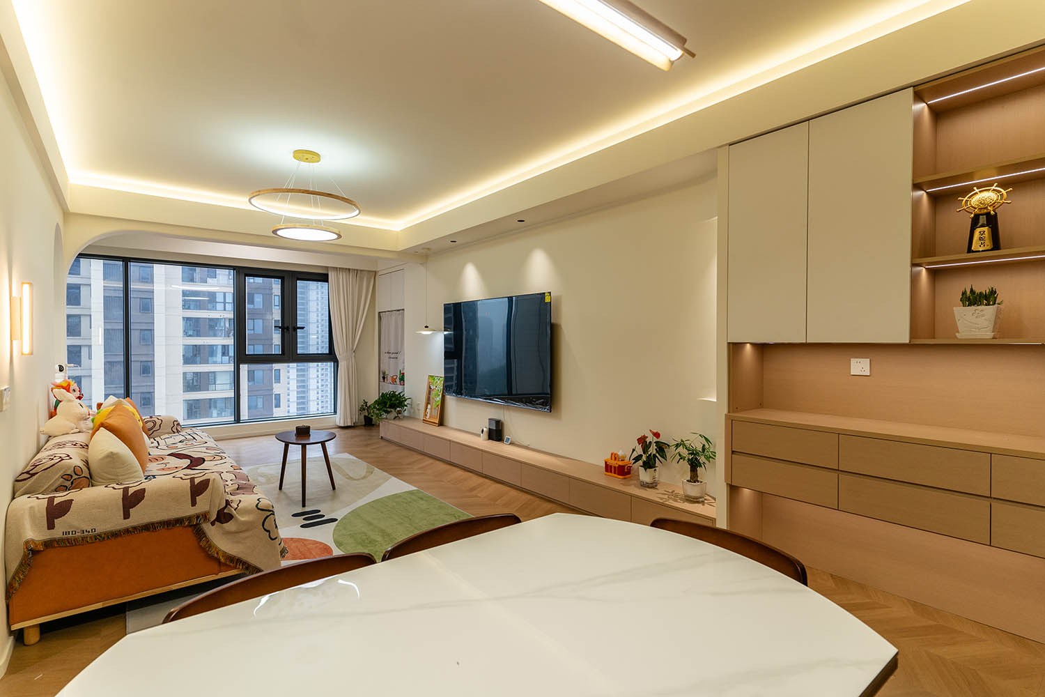 設(shè)計理念與空間基調(diào) 原木奶油風(fēng)以低飽和度色彩、自然材質(zhì)與柔和線條為核心,在建發(fā)央著100㎡的戶型中,設(shè)計師通過奶油色基底與原木元素的融合,營造出溫暖治愈的居家氛圍。整體風(fēng)格遵循“簡而不空”的原則,硬裝以簡約的幾何造型與流暢的動線為主,軟裝則強調(diào)材質(zhì)的天然感與舒適性,在實用性與美學(xué)之間找到完美平衡。 建發(fā)央著100㎡的原木奶油風(fēng),通過色彩、材質(zhì)與光影的巧妙平衡,將自然治愈感融入日常。既以開放式布局與智能收納滿足了現(xiàn)代生活的高效需求,又以弧形曲線與柔軟織物撫慰居者身心,真正詮釋了 “簡約中見細(xì)節(jié),溫柔中藏高級” 的居住理想。