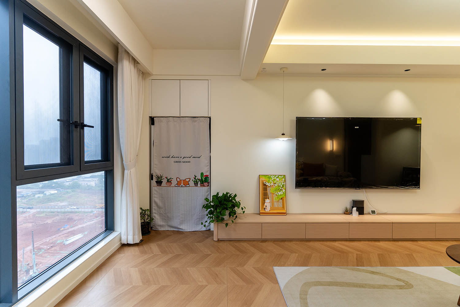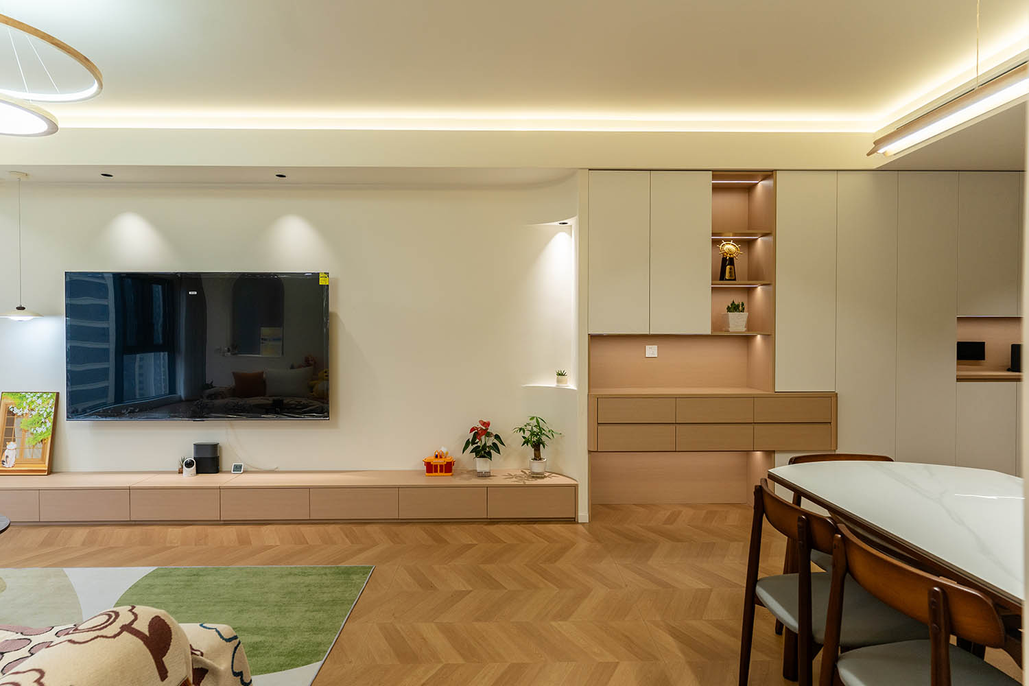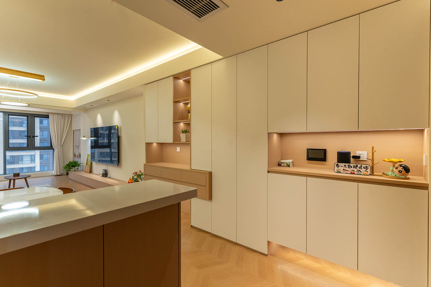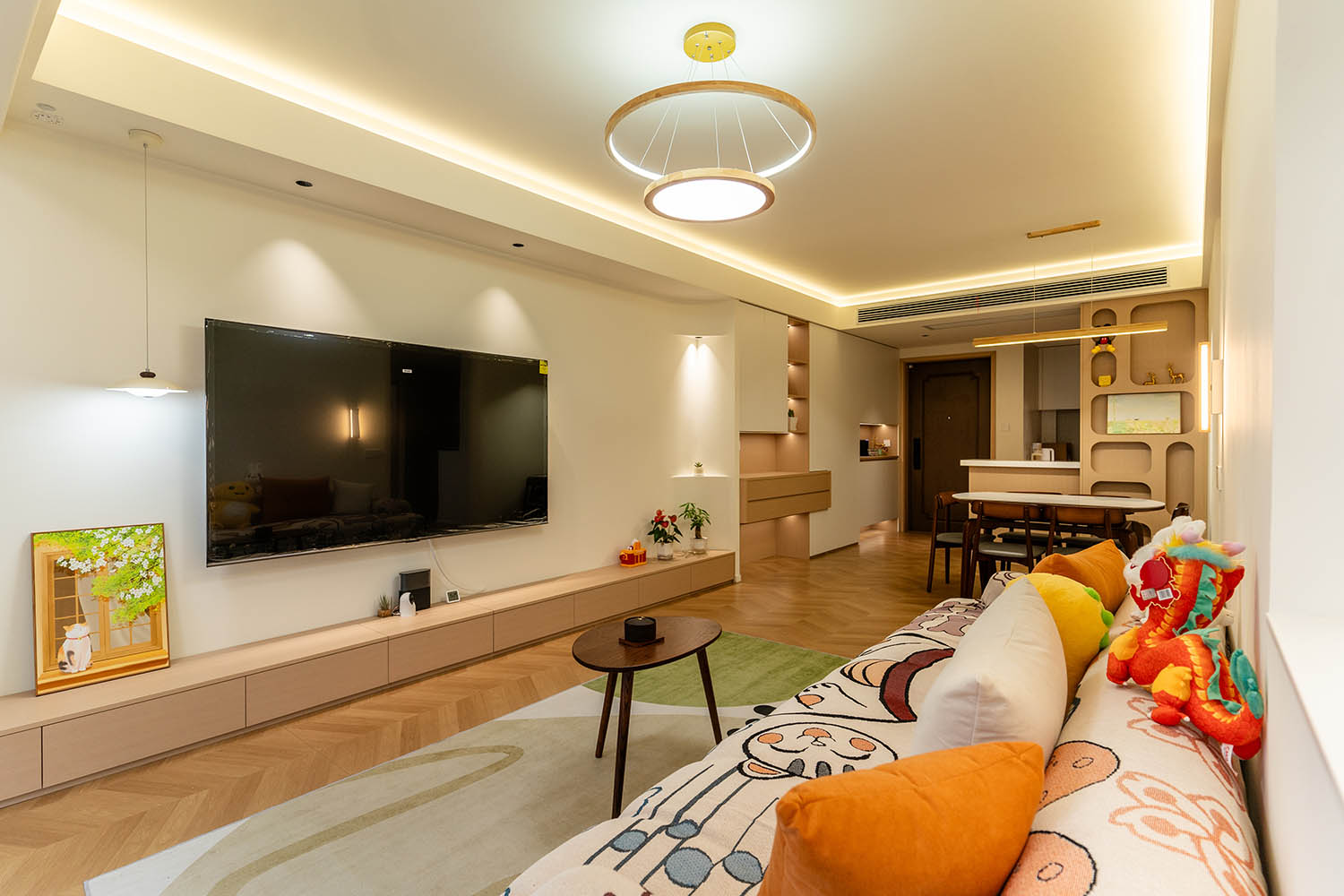 設(shè)計理念與空間基調(diào) 原木奶油風(fēng)以低飽和度色彩、自然材質(zhì)與柔和線條為核心,在建發(fā)央著100㎡的戶型中,設(shè)計師通過奶油色基底與原木元素的融合,營造出溫暖治愈的居家氛圍。整體風(fēng)格遵循“簡而不空”的原則,硬裝以簡約的幾何造型與流暢的動線為主,軟裝則強調(diào)材質(zhì)的天然感與舒適性,在實用性與美學(xué)之間找到完美平衡。 建發(fā)央著100㎡的原木奶油風(fēng),通過色彩、材質(zhì)與光影的巧妙平衡,將自然治愈感融入日常。既以開放式布局與智能收納滿足了現(xiàn)代生活的高效需求,又以弧形曲線與柔軟織物撫慰居者身心,真正詮釋了 “簡約中見細(xì)節(jié),溫柔中藏高級” 的居住理想。