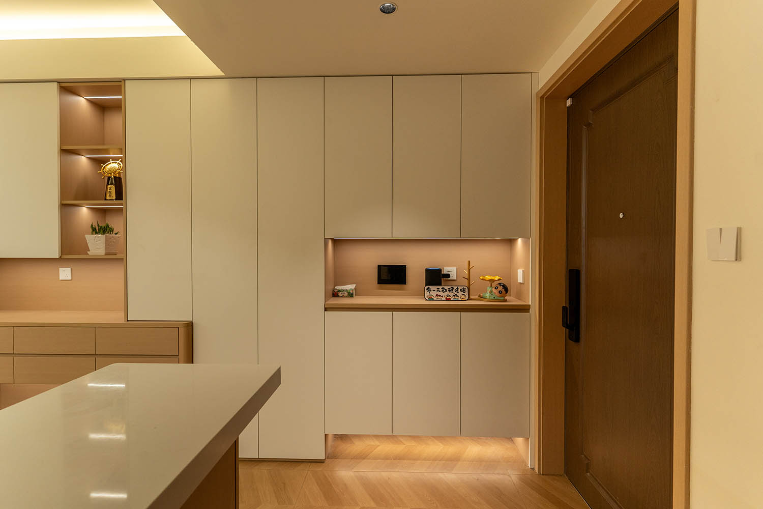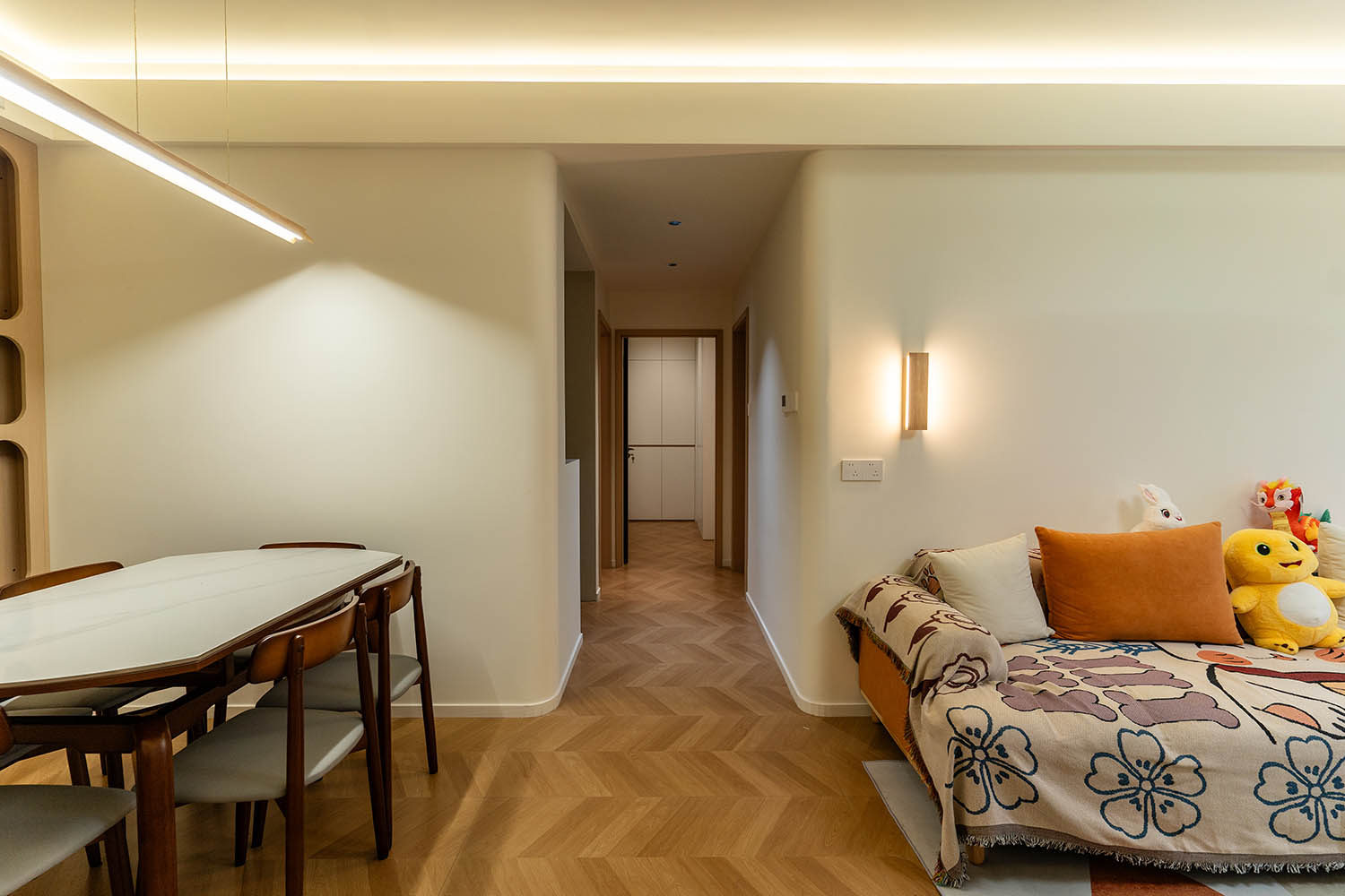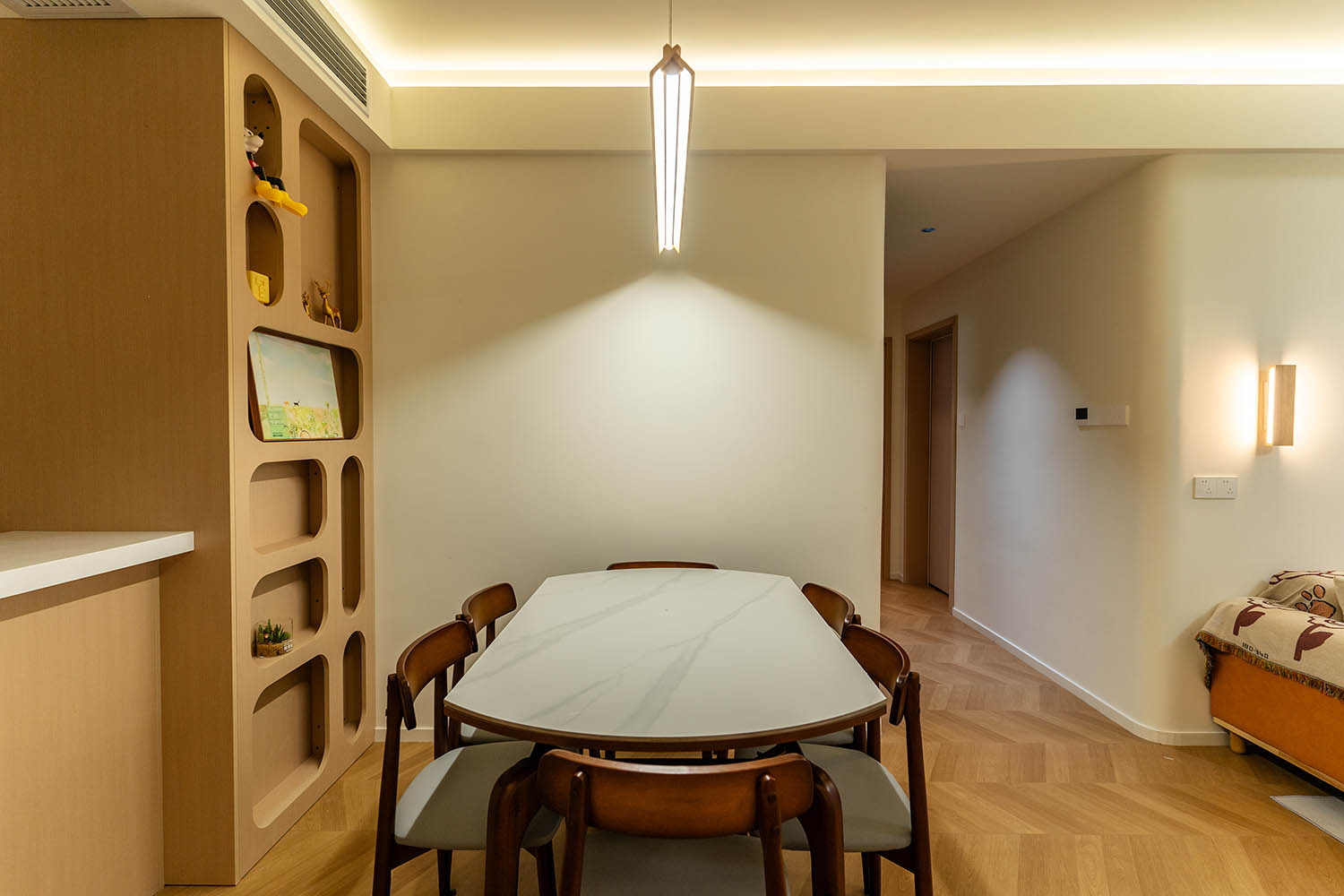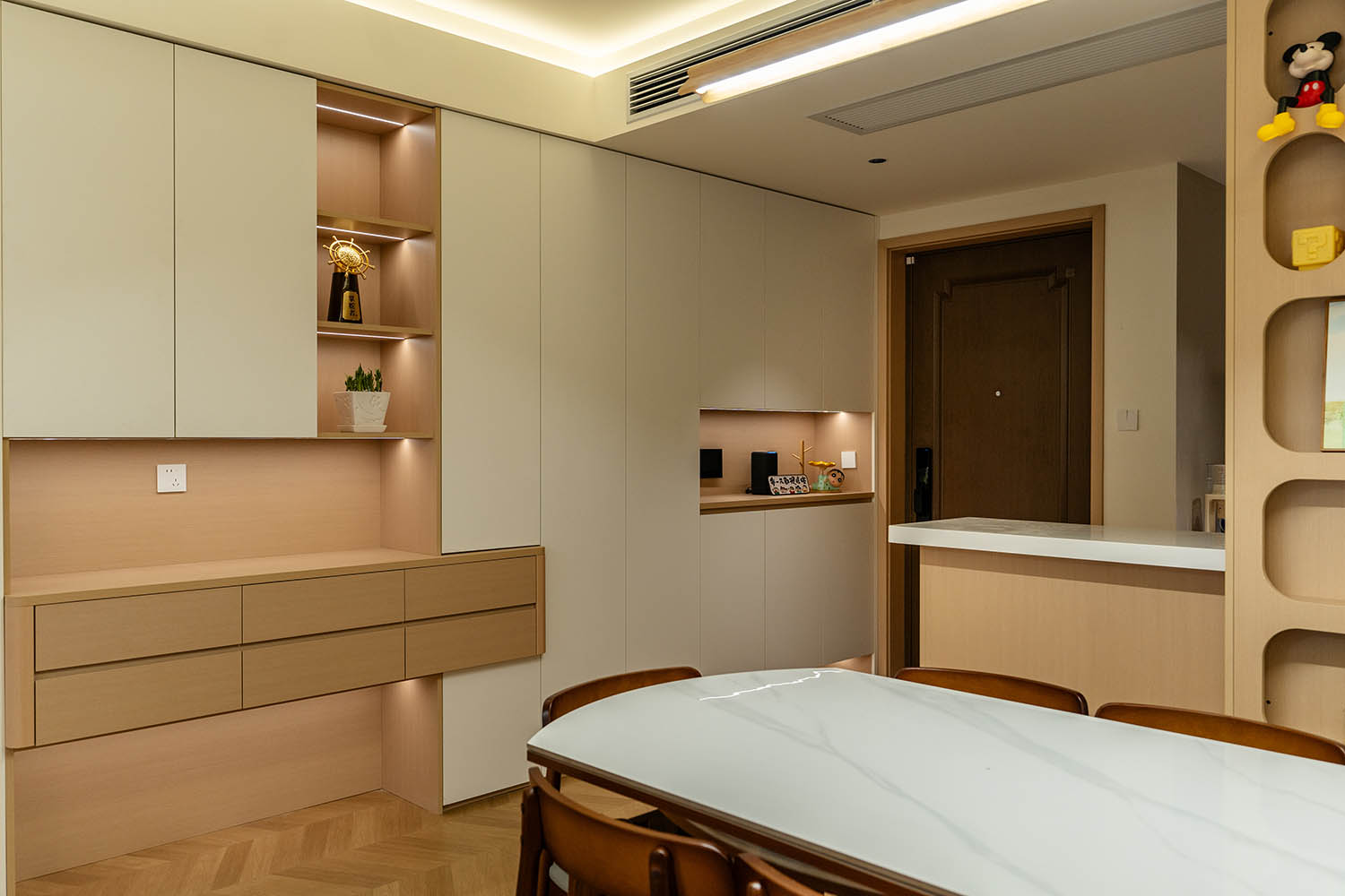 設(shè)計理念與空間基調(diào) 原木奶油風(fēng)以低飽和度色彩、自然材質(zhì)與柔和線條為核心,在建發(fā)央著100㎡的戶型中,設(shè)計師通過奶油色基底與原木元素的融合,營造出溫暖治愈的居家氛圍。整體風(fēng)格遵循“簡而不空”的原則,硬裝以簡約的幾何造型與流暢的動線為主,軟裝則強調(diào)材質(zhì)的天然感與舒適性,在實用性與美學(xué)之間找到完美平衡。 建發(fā)央著100㎡的原木奶油風(fēng),通過色彩、材質(zhì)與光影的巧妙平衡,將自然治愈感融入日常。既以開放式布局與智能收納滿足了現(xiàn)代生活的高效需求,又以弧形曲線與柔軟織物撫慰居者身心,真正詮釋了 “簡約中見細(xì)節(jié),溫柔中藏高級” 的居住理想。